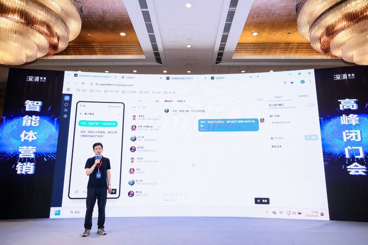 作为已经成功帮助几十家大型企业 AI Agent落地的行业领导者,CC彩票网智能DeepAgent Neo全面赋能营销域和销售域。 黄晓南和CC彩票网智能CTO欧阳辰与CC彩票网智能副总裁曹玉骥一起,为嘉宾现场演示了CRM、Social、销售、客服等场景的全面智能体,情景展现了DeepAgent Neo如何全面赋能企业各个环节。