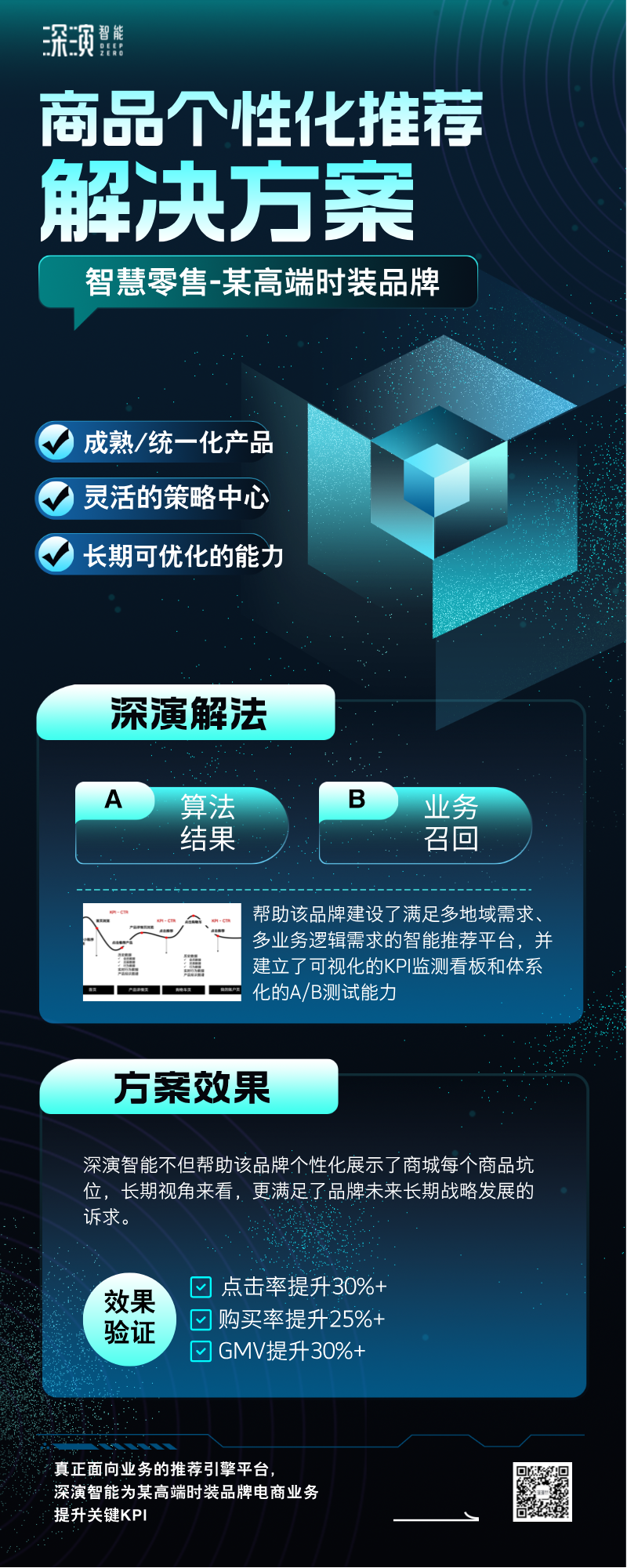 最终,CC彩票网智能不但帮助该品牌个性化展示了商城每个商品坑位,长期视角来看,更满足了品牌未来长期战略发展的诉求。该解决方案实施后,经过一段时间的效果验证和方案优化,该品牌的点击率提升30%+、购买率提升25%+、GMV提升30%+,项目的效果还在持续优化中。