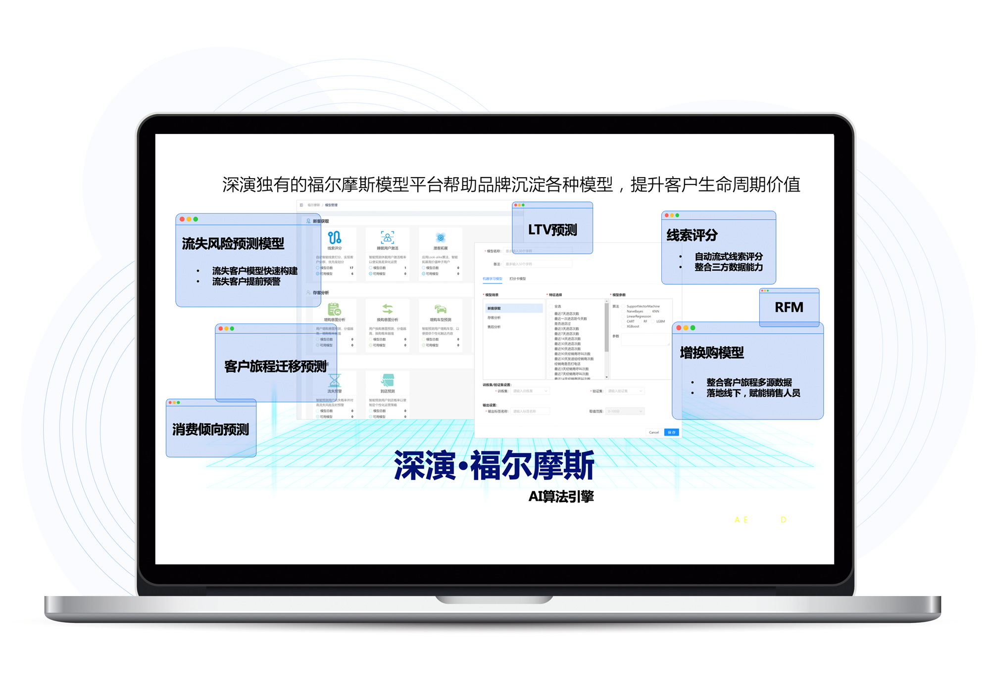 福尔摩斯AI是CC彩票网智能自主研发的AI算法模型平台,内嵌广告和用户运营两大模型体系,为CC彩票网智能营销决策云提供底层能力支撑,提升客户全生命周期价值